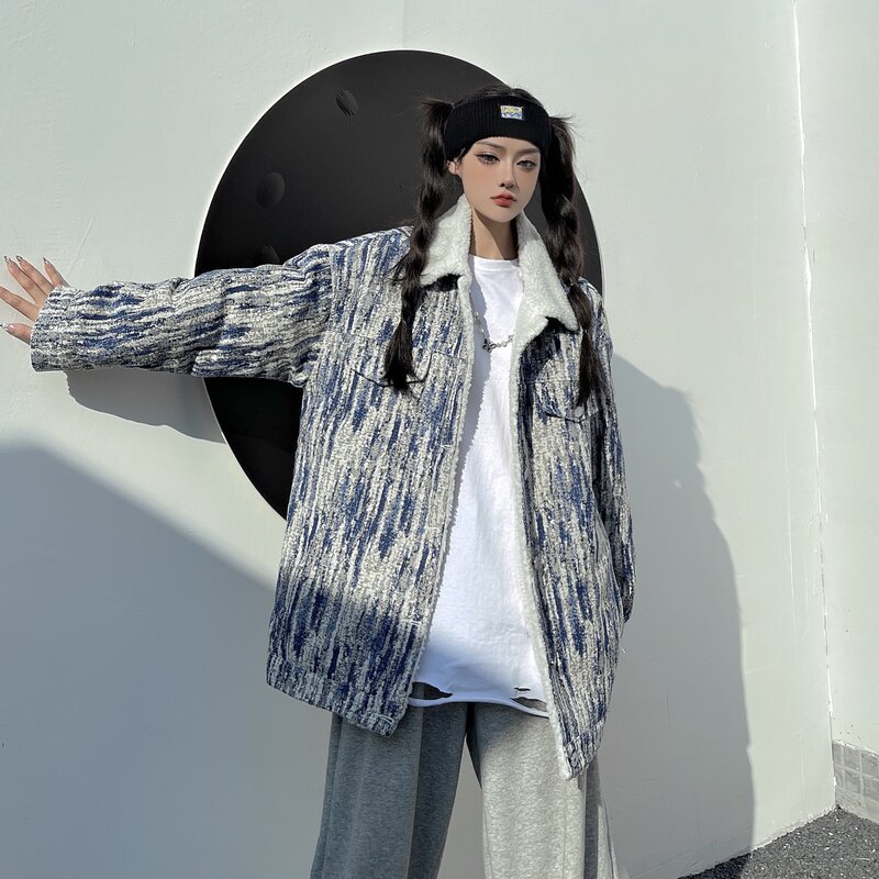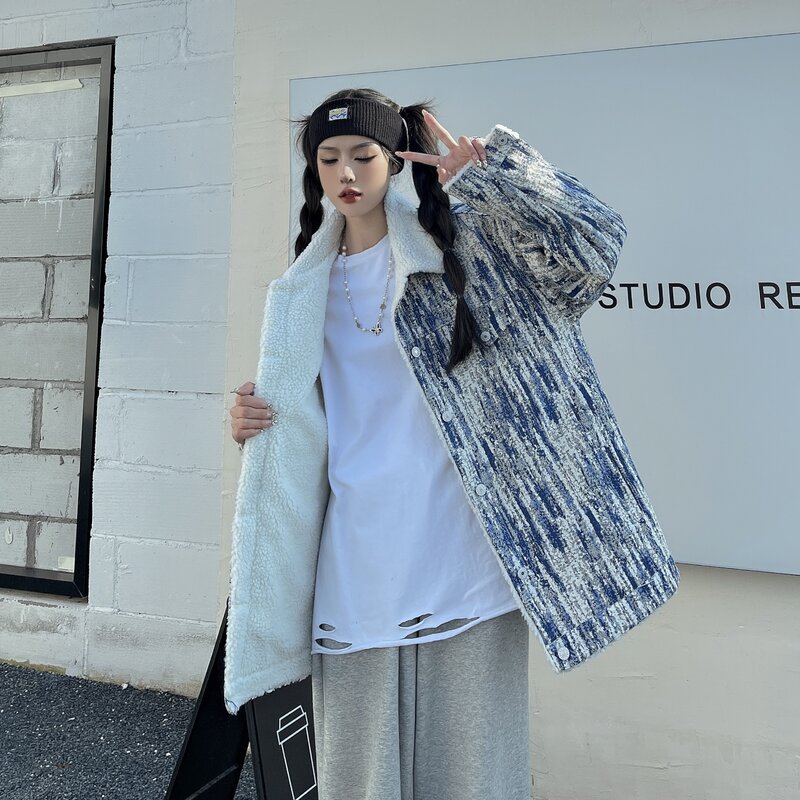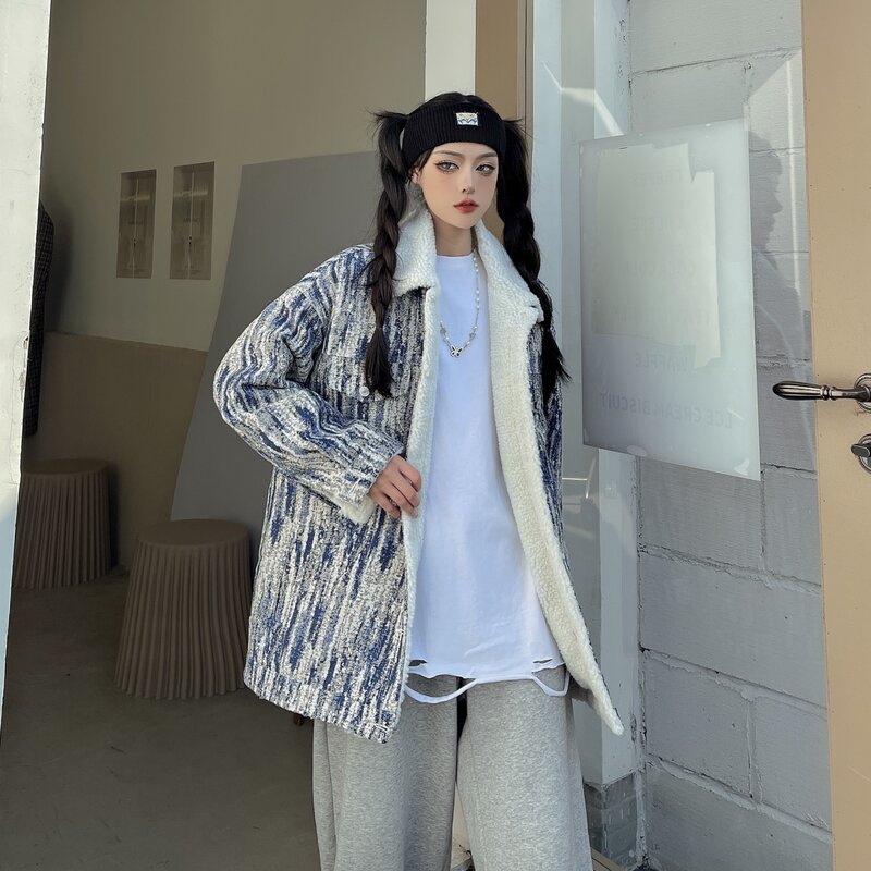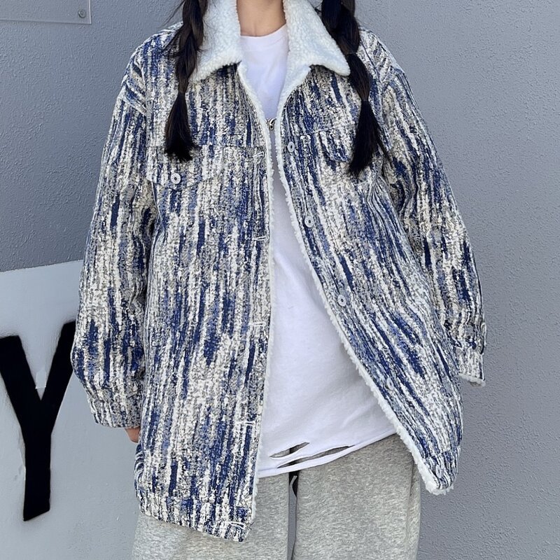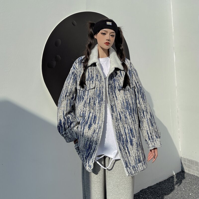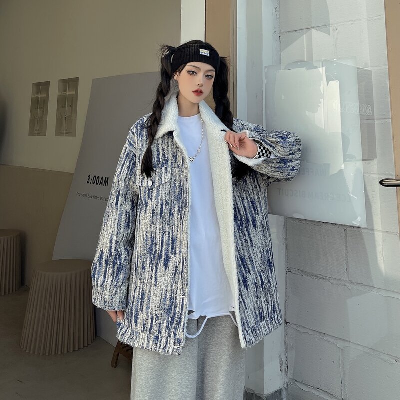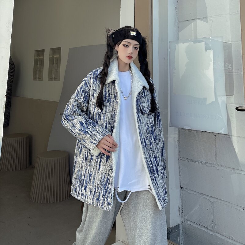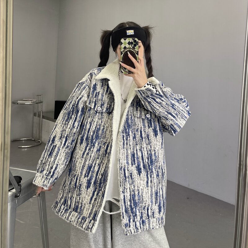 Lamb Wool Padded Jacket Women's Winter New Loose Retro Plus Velvet Thick Snowflake Denim Jacket