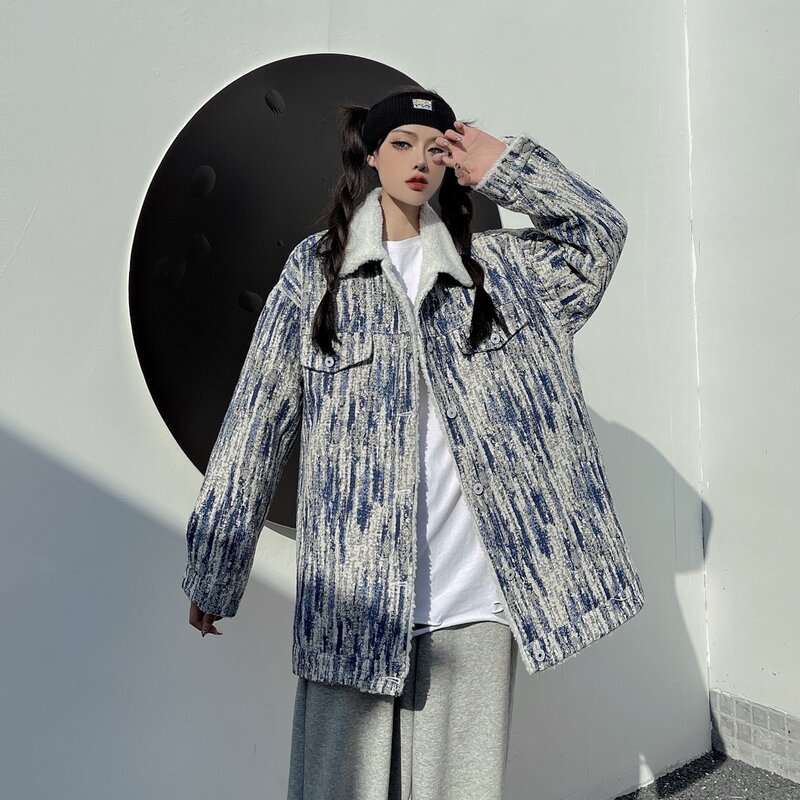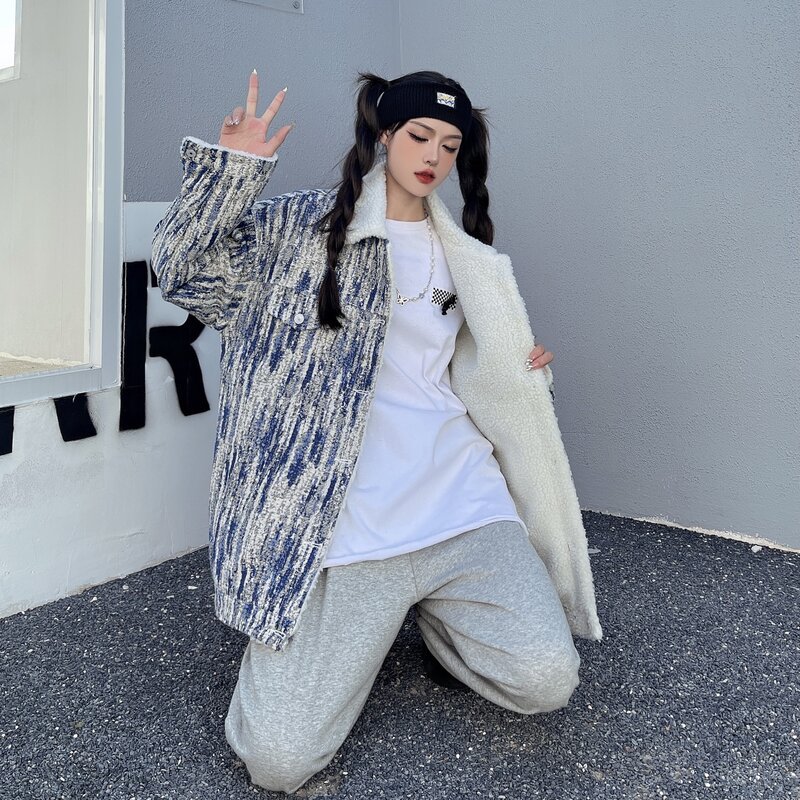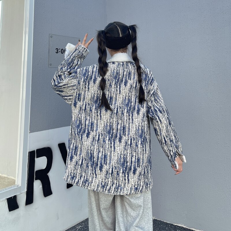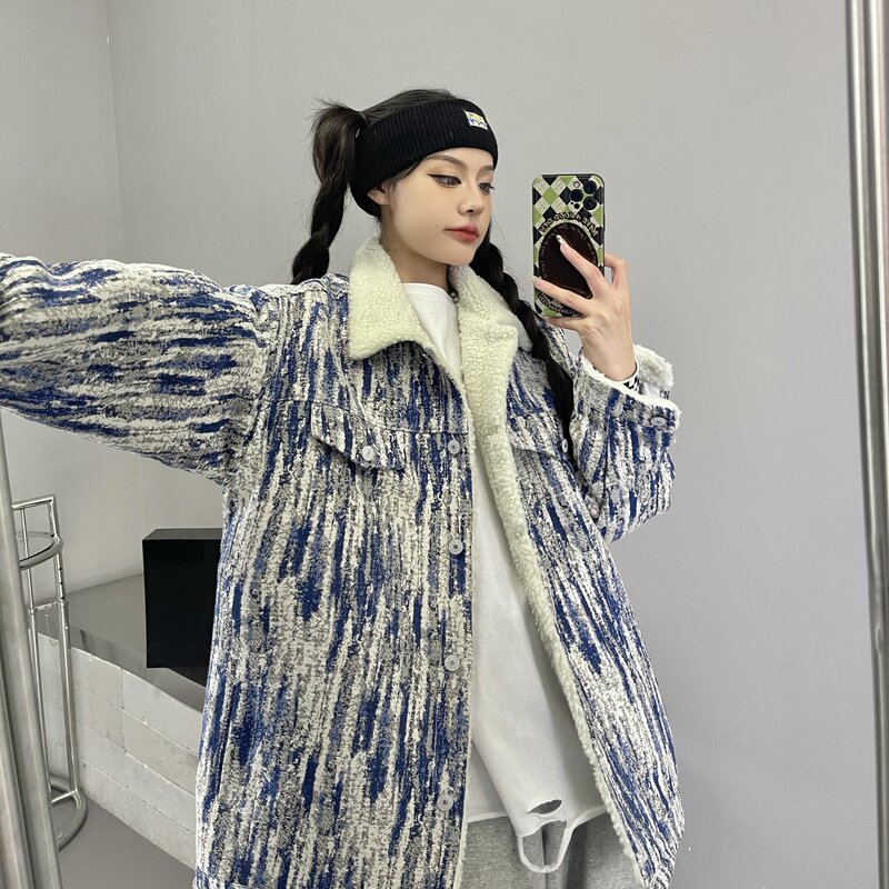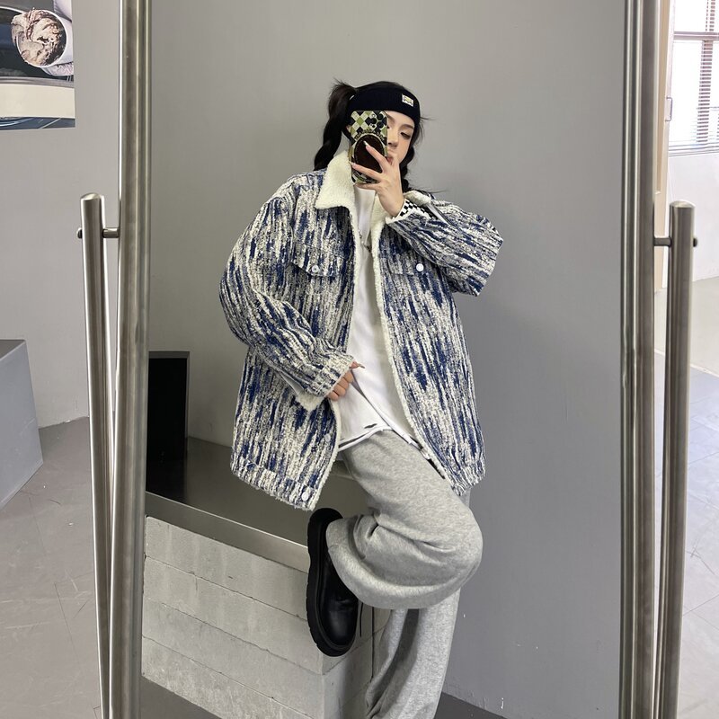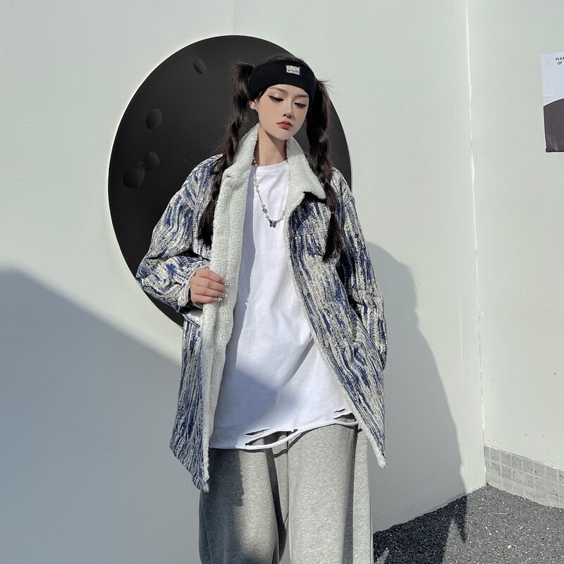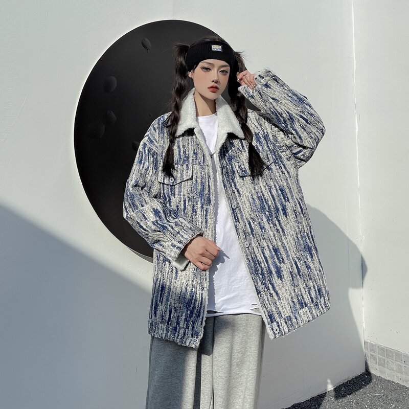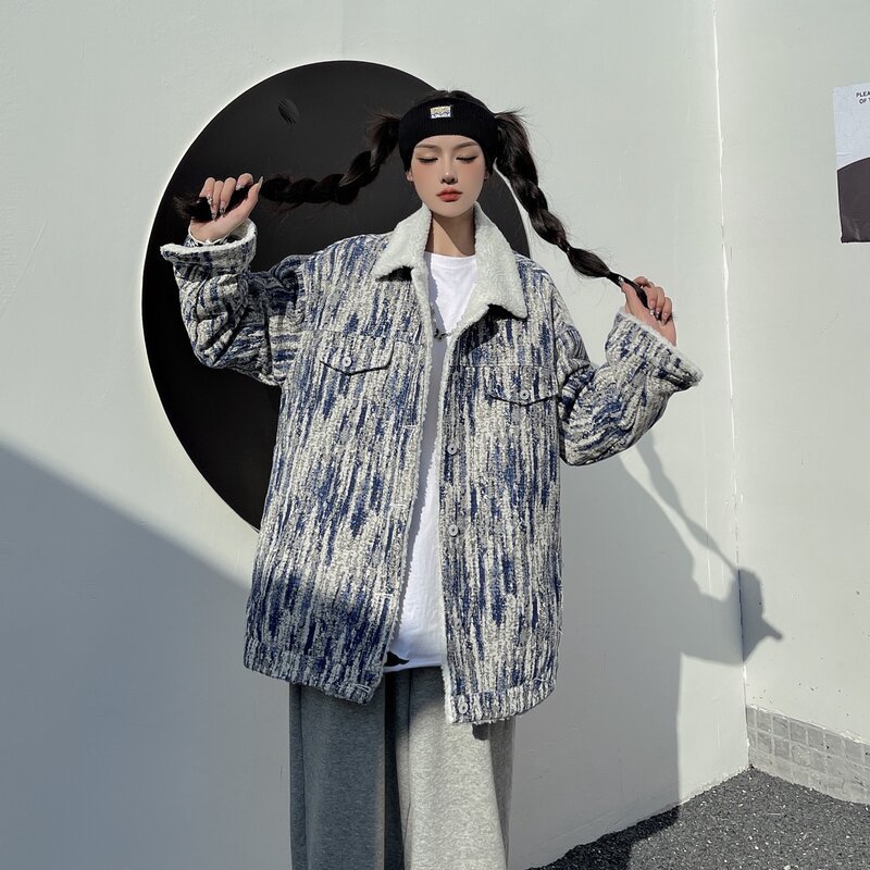 Lamb Wool Padded Jacket Women's Winter New Loose Retro Plus Velvet Thick Snowflake Denim Jacket